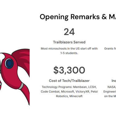 Step into a future where students lead, AI empowers, and bold new curriculum is created in real time. What we used this year will be outdated next year. Whether you're a parent, founder, or edtech innovator—there’s a place for you in the MARS movement.